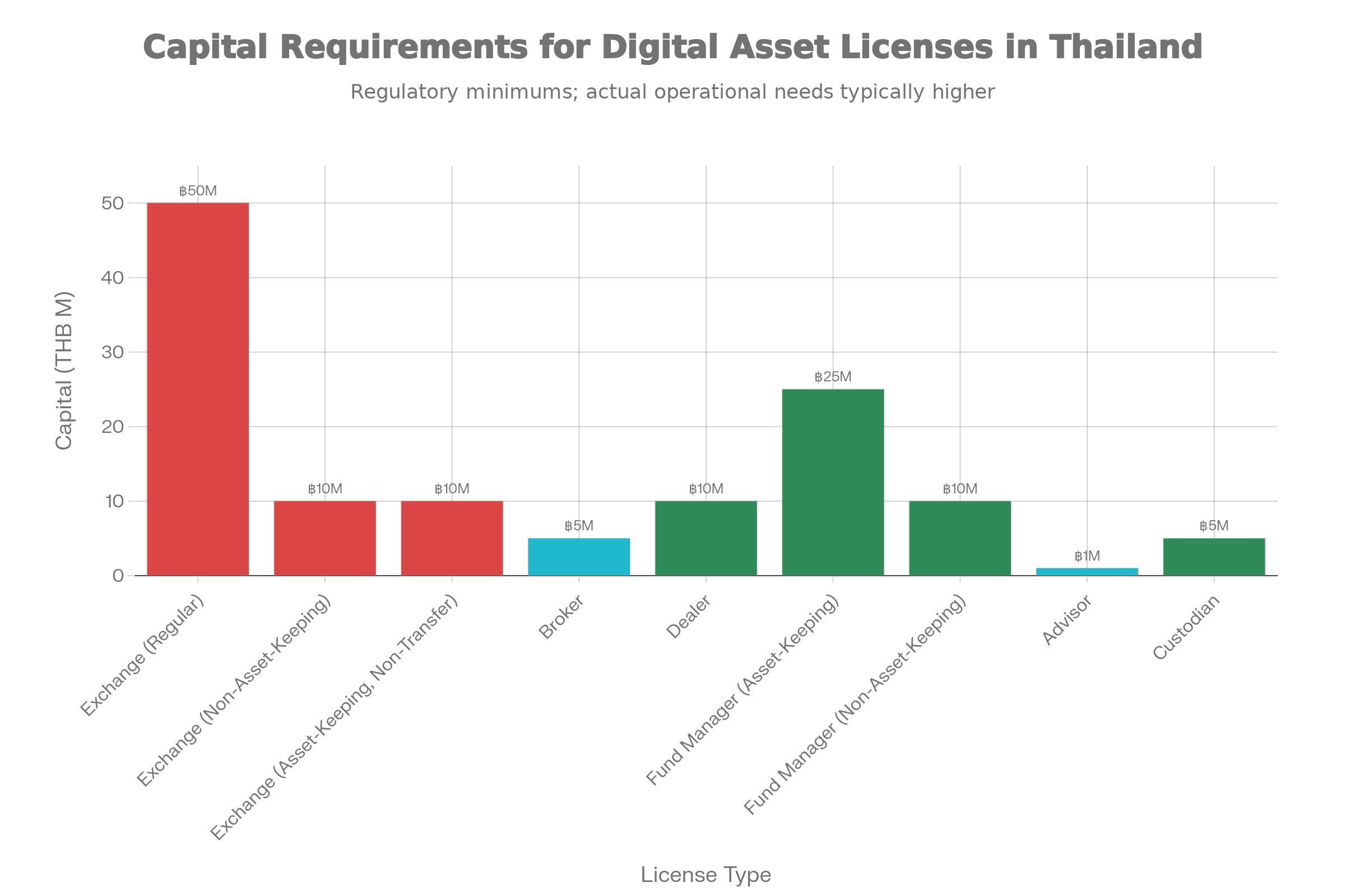 | Digital Asset Fund Manager (Asset-keeping, non-institutional) | 25 million THB | ~$700,000 | Client fund management with custody |